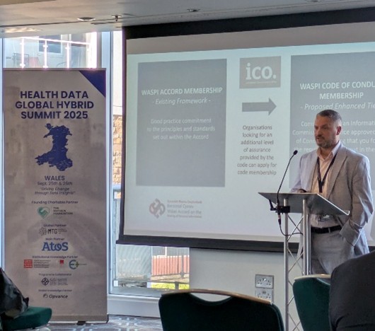 WASPI Code Manager, Dave Parsons spoke alongside representatives from Welsh Government and the Information Commissioner’s Office Welsh Office providing attendees with a talk on building trust in data sharing, compliance and ethics.